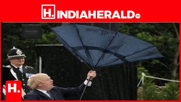 A video of boris johnson struggling with an umbrella during a memorial event has gone viral, with one twitter users even going so far as to compare the british prime minister to mr.